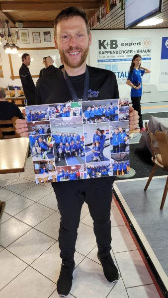 Abschied mit einen lachenden, aber vor allem mit einem weinenden Auge sieht. Mit dem lachenden Auge, dass er zu keinen anderen Verein geht, da es immer sehr schwer ist gegen ihn zu spielen. Mit den weinenden Auge, da er in der Mannschaft sehr vermisst wird. Er wünschte im weiterhin alles gut für die Zukunft. Auch beim Teammanager Elmar Diermeier bedankte sich der Teamkapitän. Er organisiert alles und vor allen bei den Auswärtsspielen der Championsleague ist für Spieler und Fans alles gut vorbereitet. An ihm überreichte er einen Gutschein.